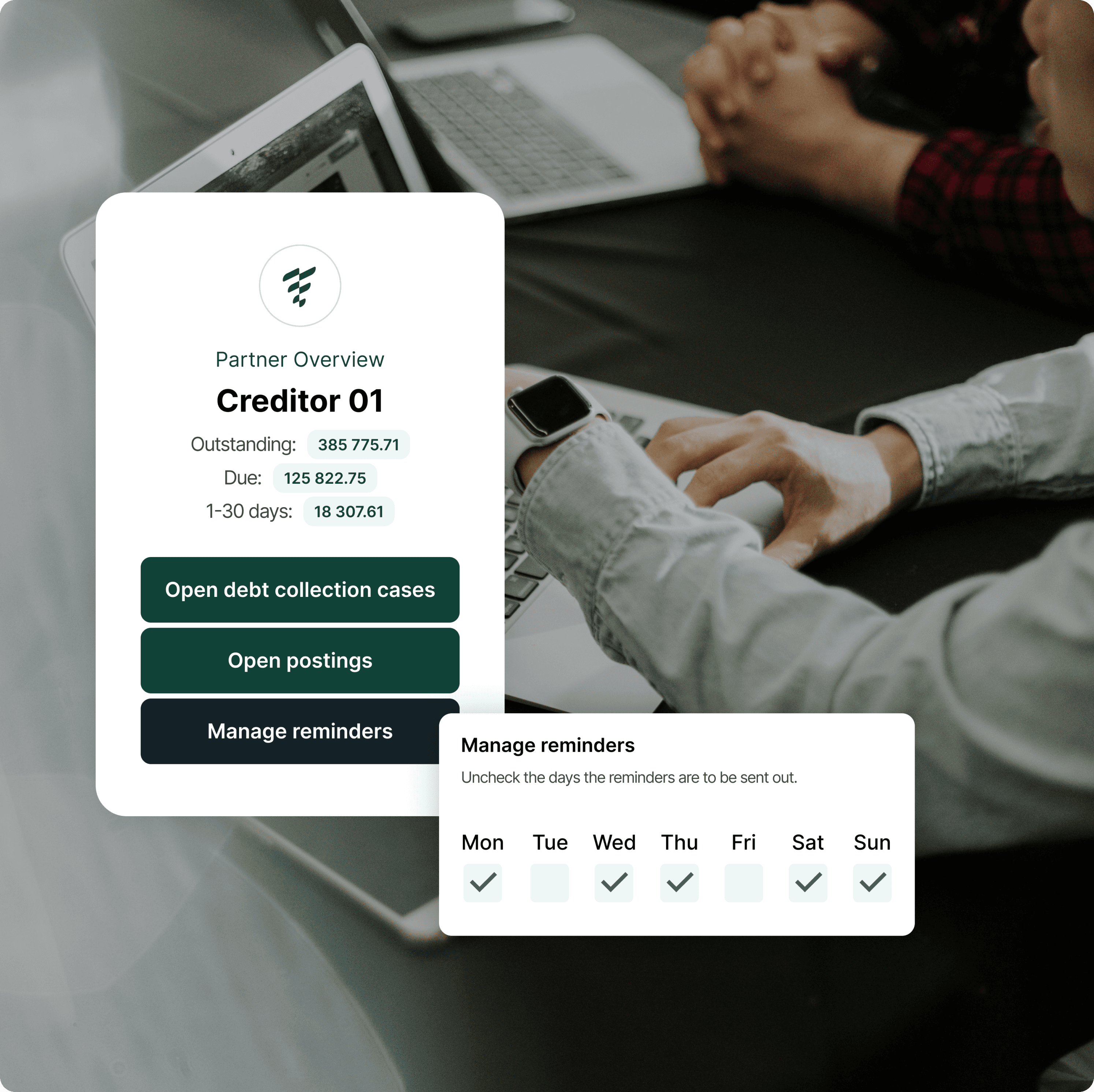 Take control with integrated debt collection: Easily and conveniently select which invoices should be forwarded with just a single click.