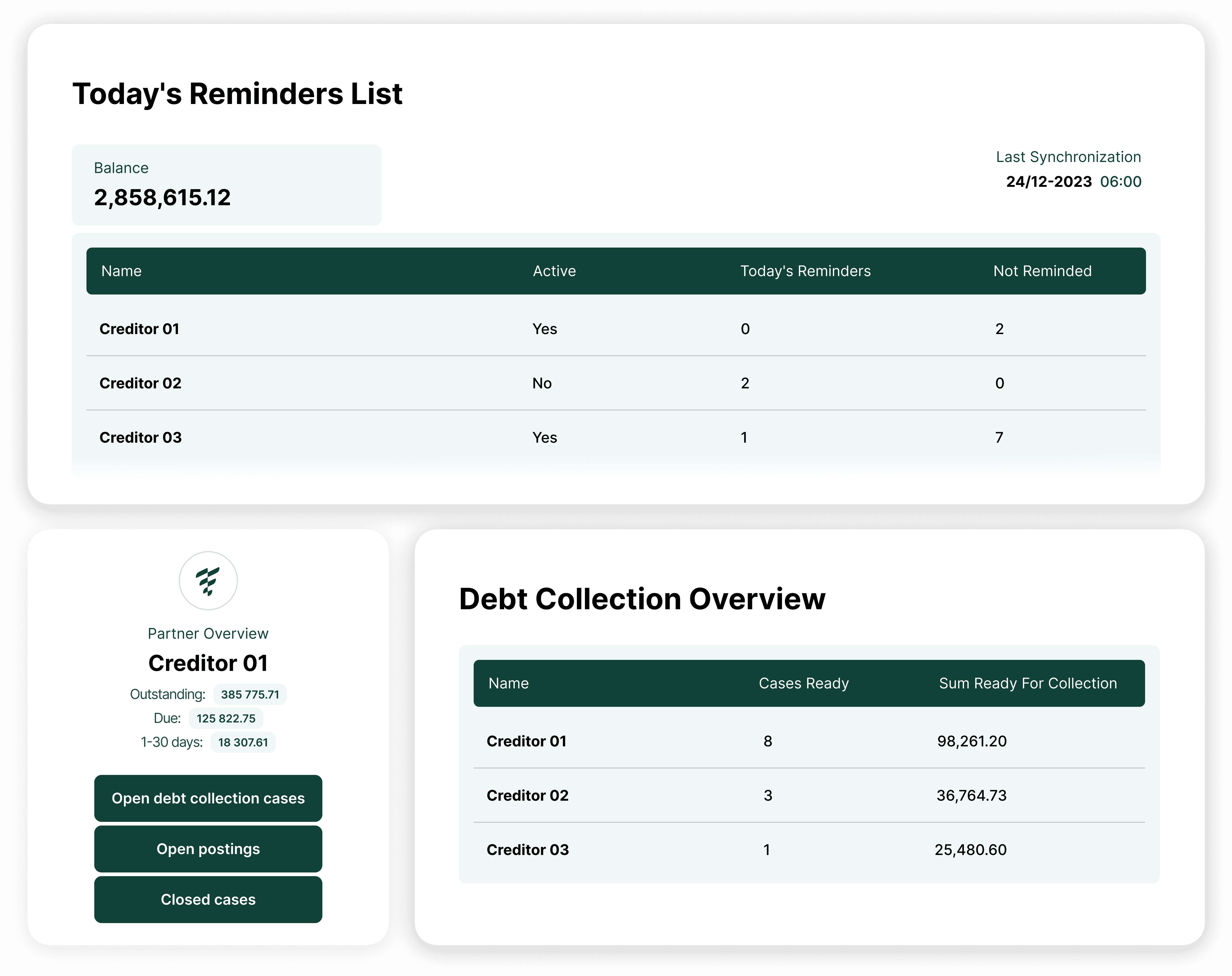 The solution provides a full overview of the receivables and the status of outstanding receivables in the same view.